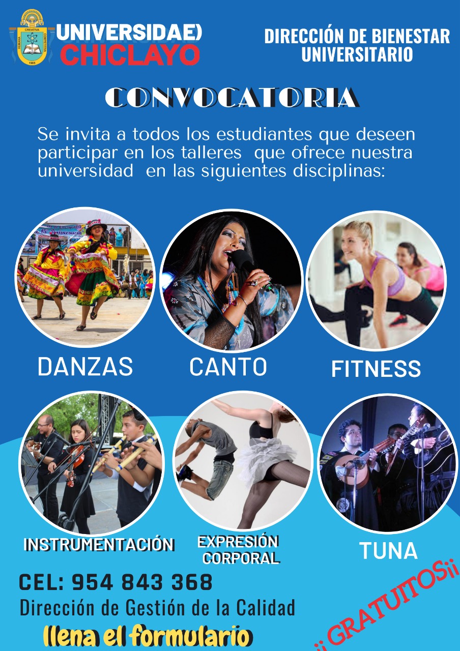 Se invita a todos los estudiantes que deseen participar en los talleres que ofrece nuestra universidad en las siguientes disciplinas.